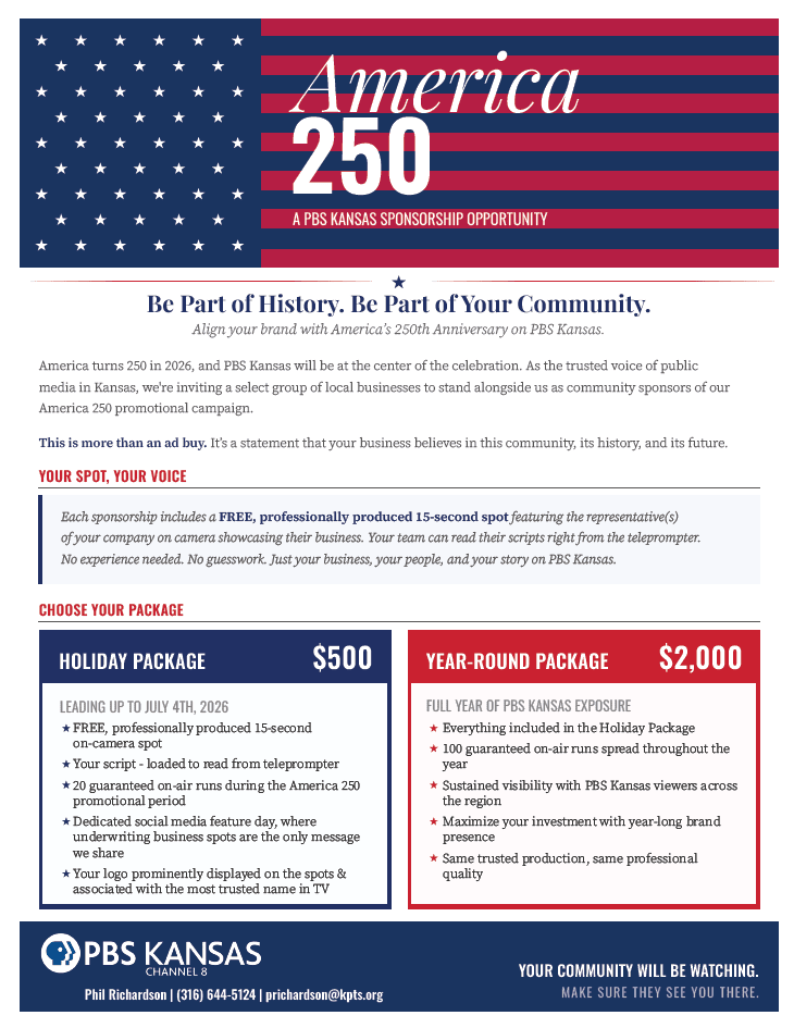Full underwriting media kit built from scratch to support sponsorship sales. Covers audience demographics, statewide broadcast and digital reach, local and national programming inventory, and the PBS brand trust positioning; all designed to give the development team a credible leave-behind for business conversations.